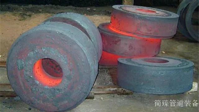 還要通過沖壓機(jī)在鋼坯上沖壓出法蘭上面的圓孔,成型的毛坯法蘭要放入電爐中進(jìn)行熱處理增加法蘭的強(qiáng)度,最后還要對法蘭毛坯切割拋光成為可以使用的法蘭。